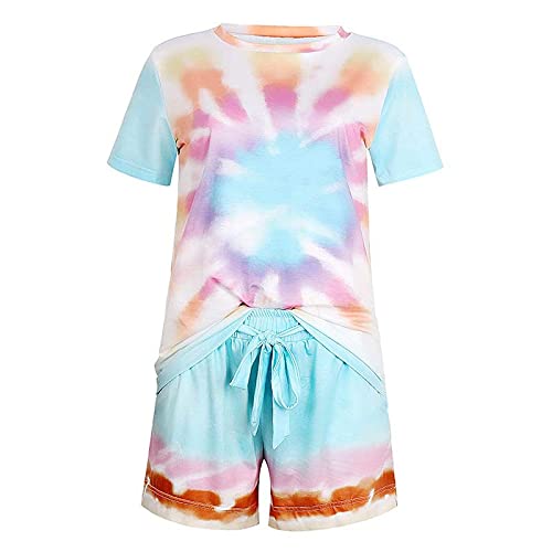SLOPSS Ladies Pajamas,Tie Dye Lounge Set Summer Pajama Women Pajama Set Short Sleeve Sleep Wear Women Nightwear Shorts Cosy Sleepwear Set Female Gift,Blue,s