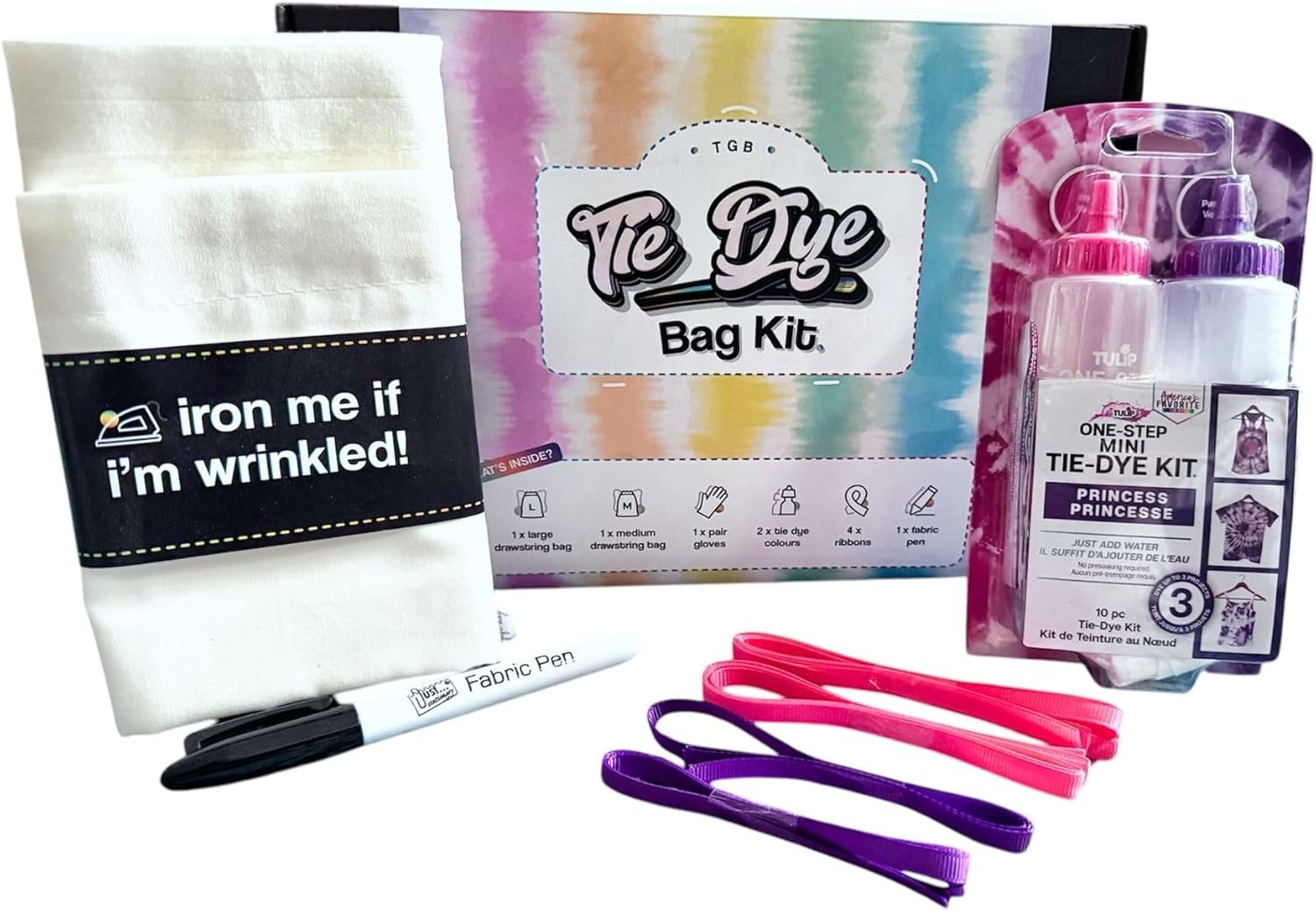 Tie Dye Accessories Set - Tie Dye Kit Containing: 1 Tote Bag, 1 Scrunchie, 1 Pur
