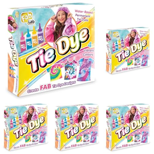 FabLab FL004 Tie Dye Kit Toy, with 4 Large Bottles of Vibrant Colours (Pack of 5)