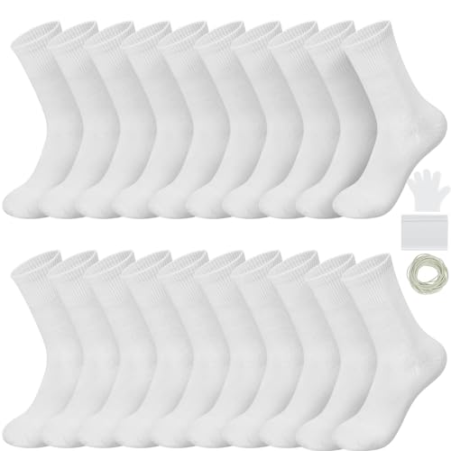 Silkfly Boy's/Girl's 10 Pair Crew Cotton Socks White for Tie Dye Kit Item Thing to Tie Dye for Large Groups Tie Dye Party, Classic, 4.5-8 UK