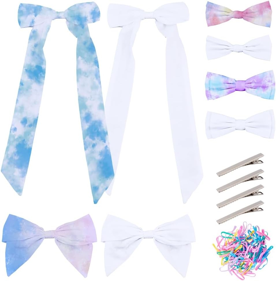 124Pcs Tie Dye Hair Accessories DIY Tie Dye Hair Kit with 12Pcs White Cotton Bo