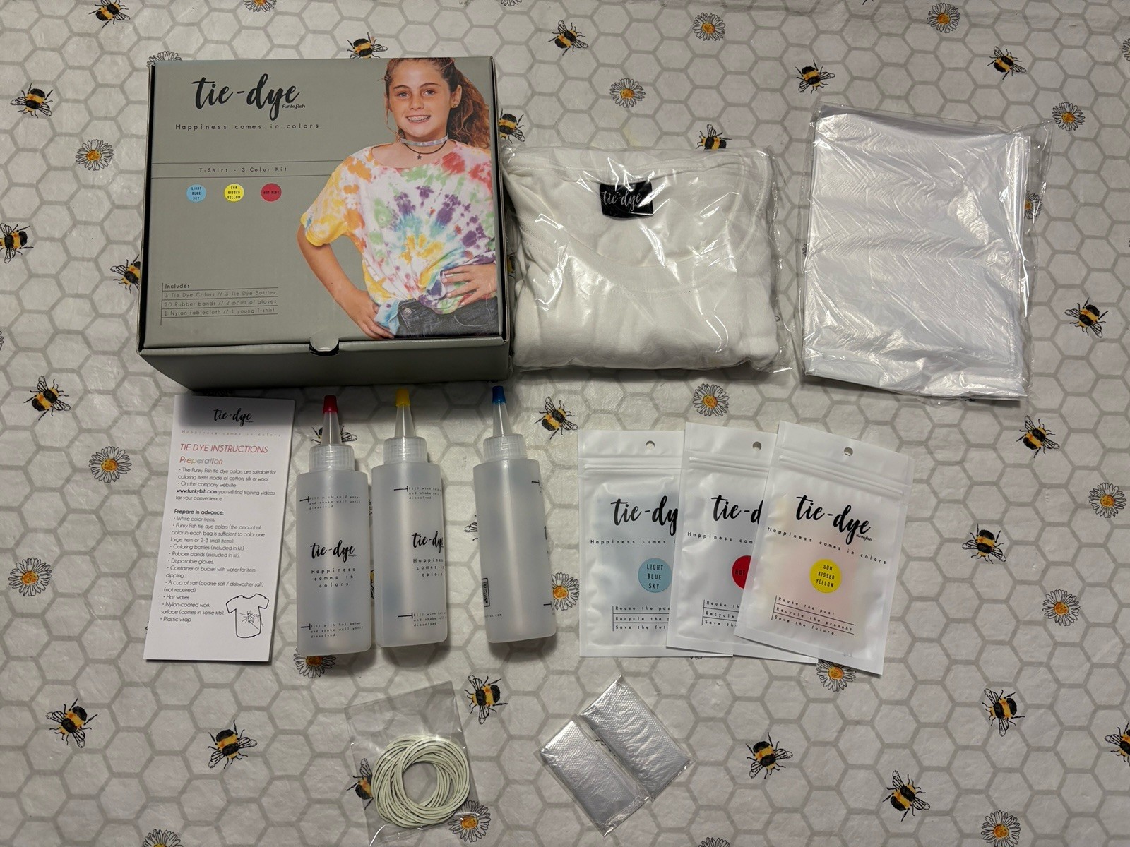 FunkyFish 3 Color Tie Dye Kit Craft Activity Set (Blue, Yellow, Red) For Young