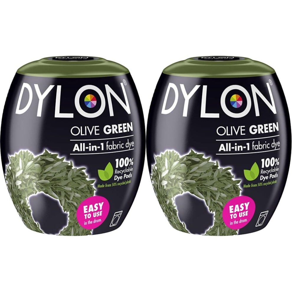 DYLON Washing Machine Fabric Dye Pod for Clothes & Soft Furnishings, 350g â Olive Green (Pack of 2)