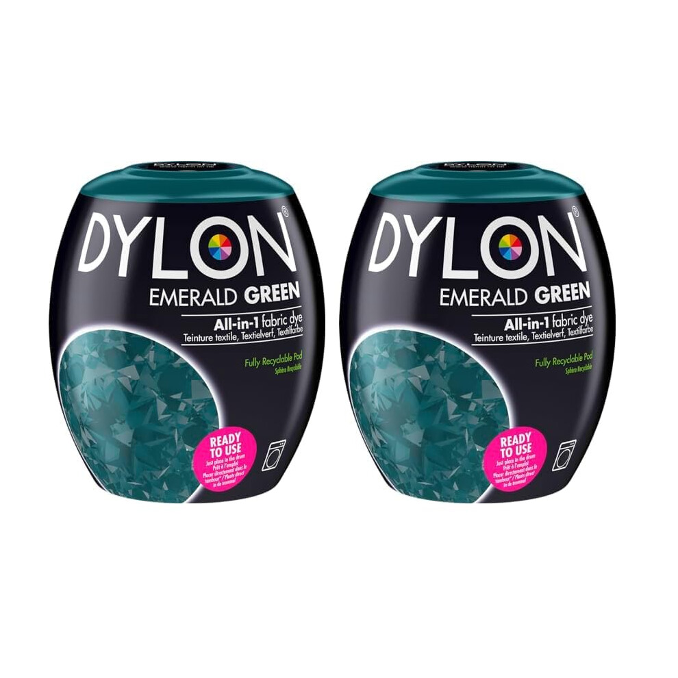 DYLON Washing Machine Fabric Dye Pod for Clothes & Soft Furnishings, 350g â Emerald Green (Pack of 2)