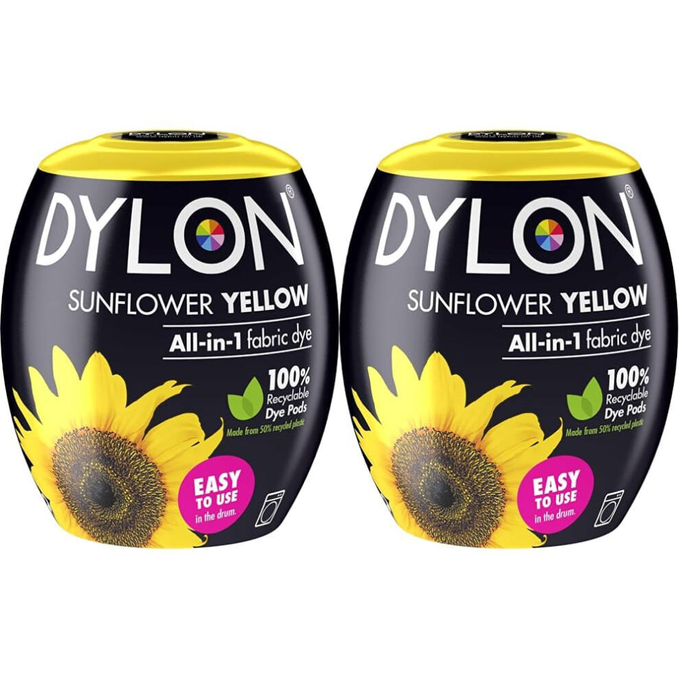 DYLON Washing Machine Fabric Dye Pod for Clothes & Soft Furnishings, 350g â Sunflower Yellow (Pack of 2)