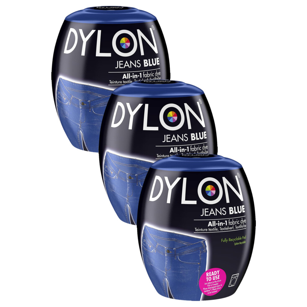DYLON Washing Machine Fabric Dye Pod for Clothes & Soft Furnishings, 350g â Jeans Blue (Pack of 3)