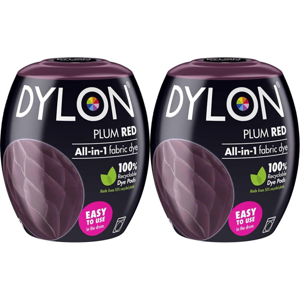 DYLON Washing Machine Fabric Dye Pod for Clothes & Soft Furnishings, 350g â Plum Red (Pack of 2)