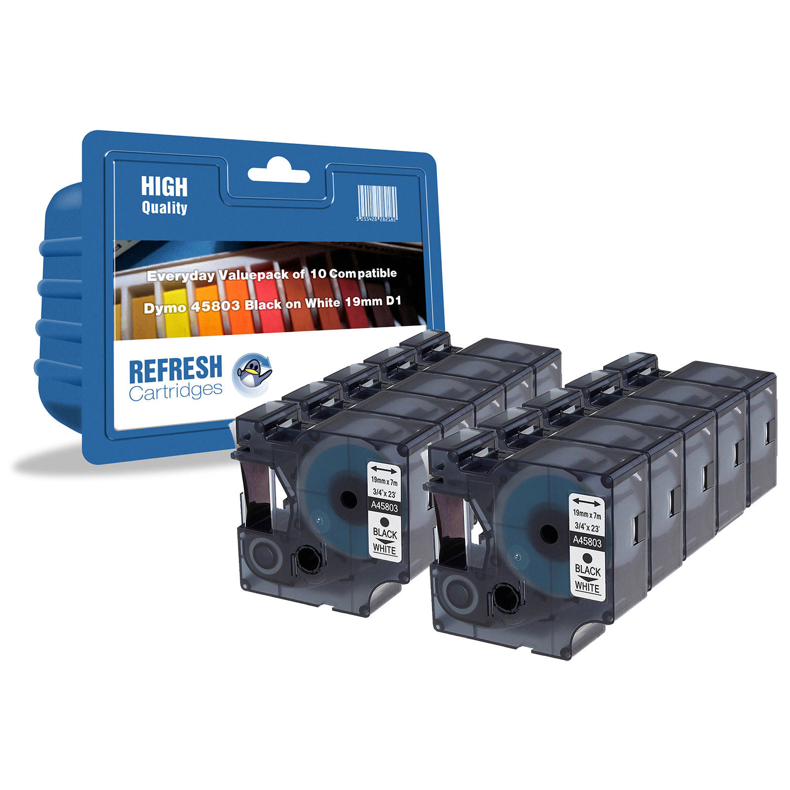Everyday Valuepack of 10 Compatible Dymo 45803 Black on White 19mm D1 Label Cartridges (2093098)