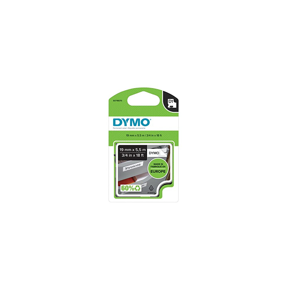 DYMO D1 Labels, Black Print on White, 19mm x 7m, Self-Adhesive Labels for LabelManager Label Printers, Authentic