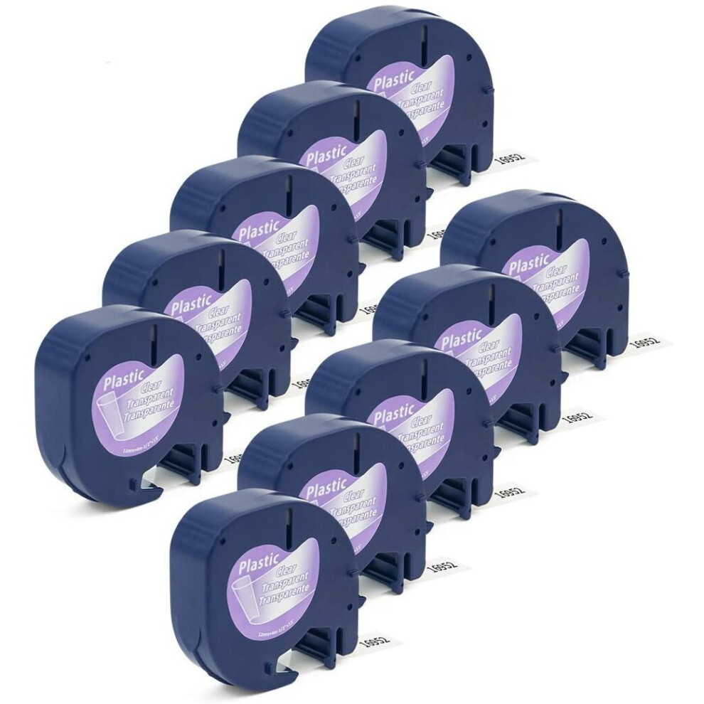 10X 12267 Replacement Label Tape for Dymo LetraTag Black on Clear/Transparent 12267 S0721530 Plastic Label Cassette LT Label Cartridges for LT-100H