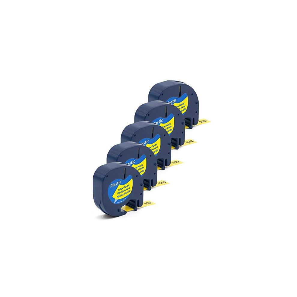 5-Pack Yellow Plastic Tape Replacement for Dymo LetraTag Label Tape 12mm x 4m 91202 C