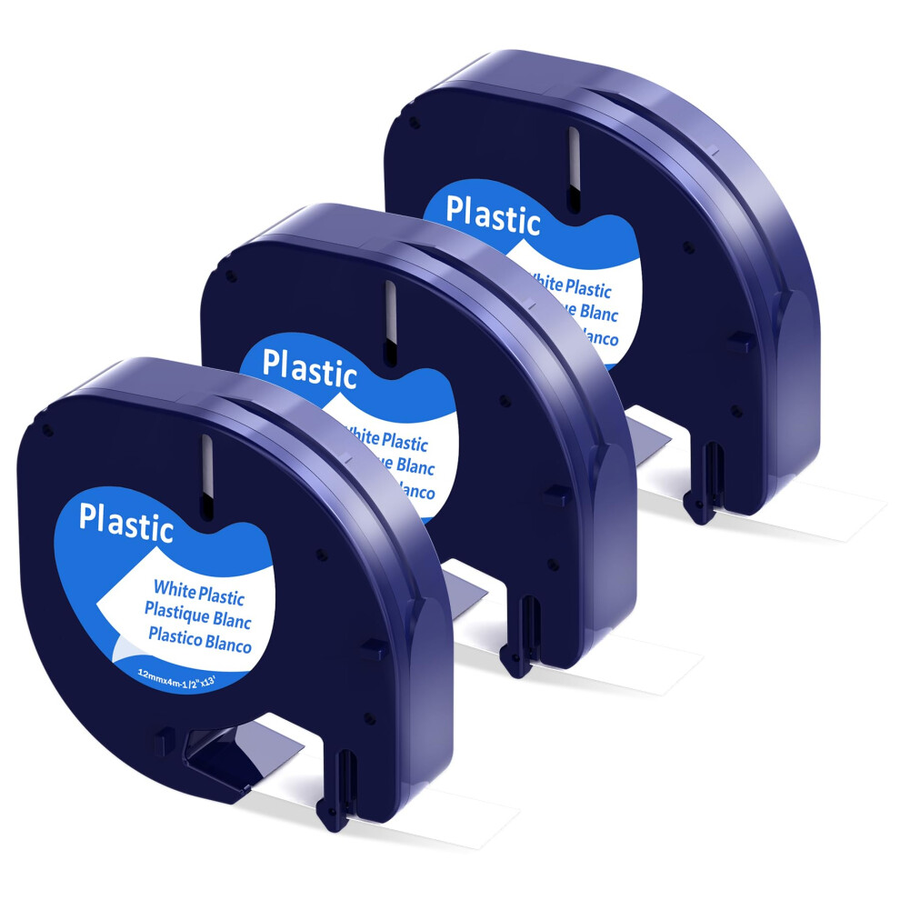 3 X 91201 Label Tape Replacement for Dymo Letratag Tape Plastic White S0721610 12mm x 4m Label Maker Tape Compatible with Dymo Letratag LT-110T LT-100H LT-100T QX50 XR XM 2000
