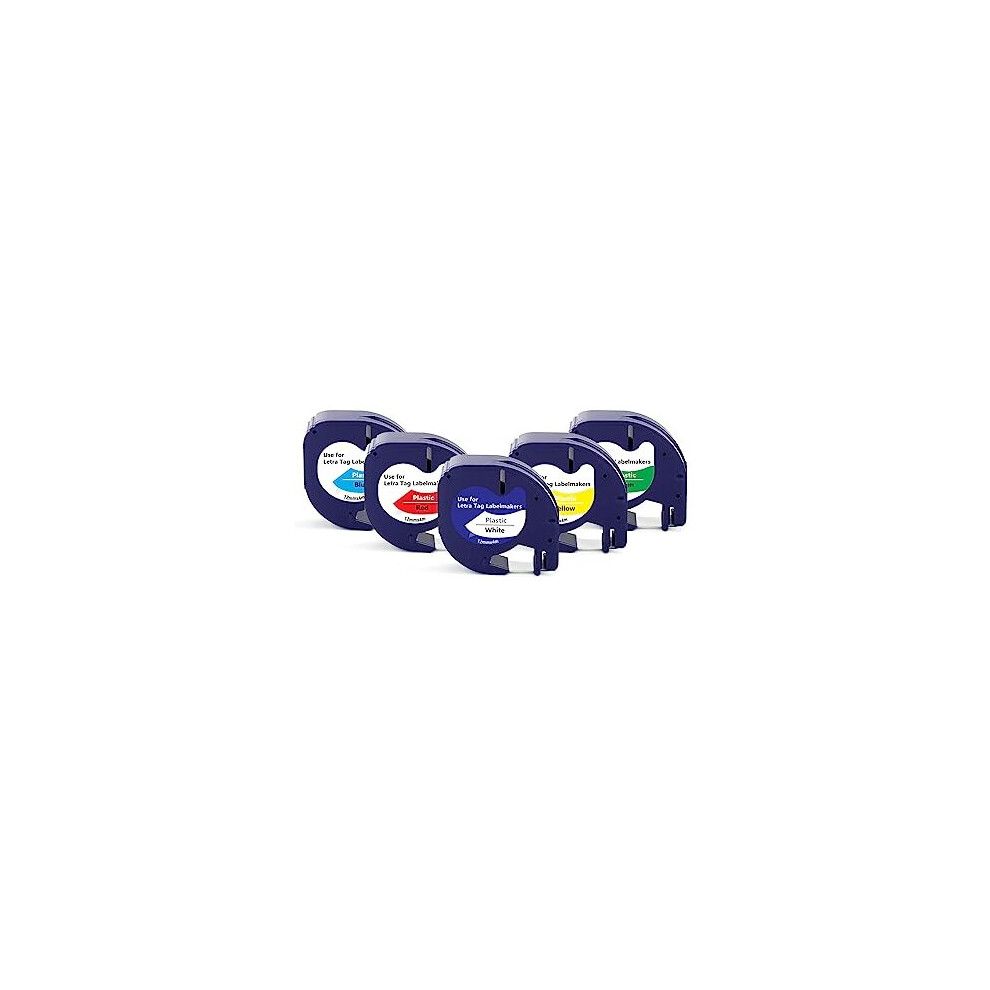 5 Pack Compatible with Dymo LetraTag Tape Plastic Colorful Label Tape-12 mm x 4 m Roll, Multicolour Lable for LT-100H LT-100T XR 200B, Black on White/Yellow/Red/Blue/Green for Dymo LetraTag Refills