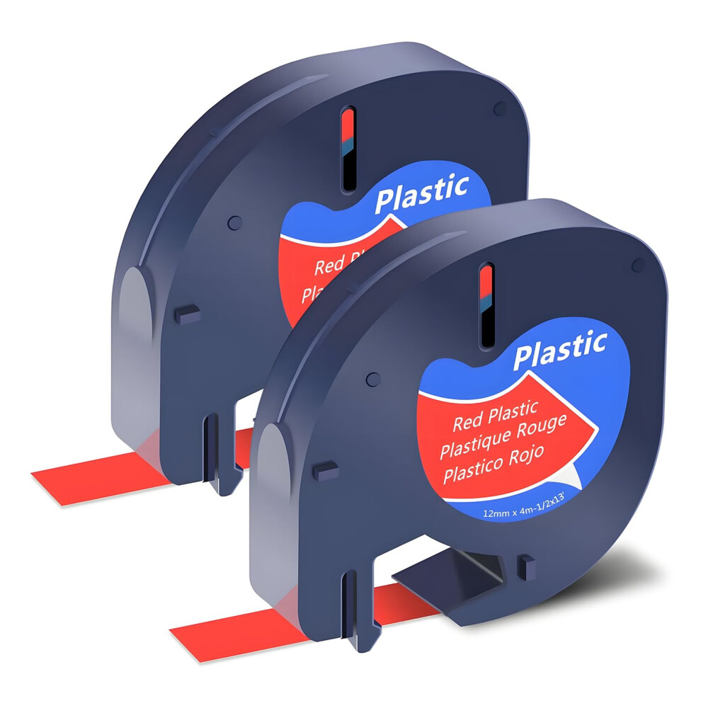 SHUBEIEUMI 2-Pack Label Tape Compatible with Dy-mo Letratag Plastic Red Tape, for Dy-