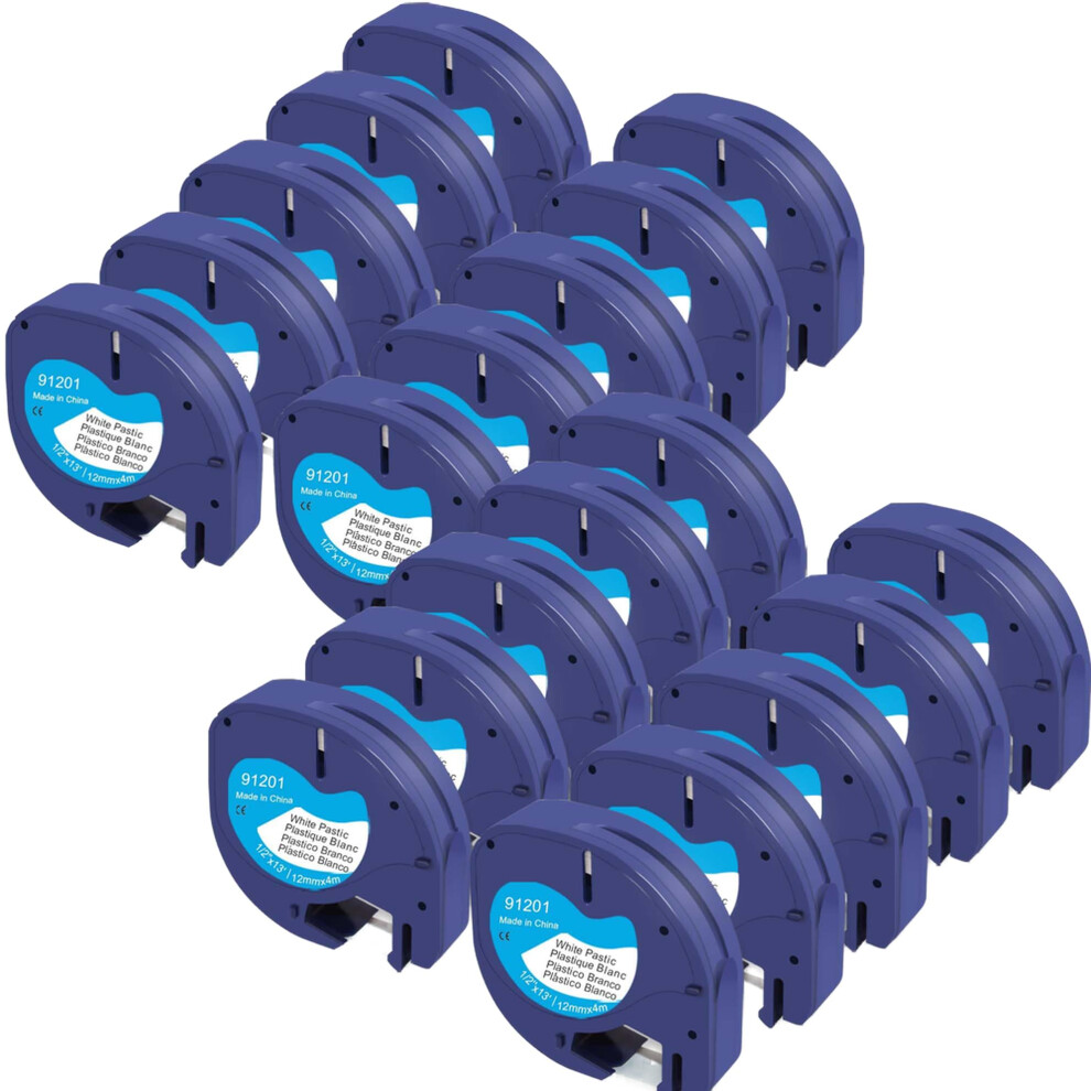 15x MarkField Compatible for Dymo LetraTag Plastic Labels Tape 12 mm x 4 m, 91201 91221 S0721610 Label Compatible for Dymo LetraTag LT-100H LT-100T QX