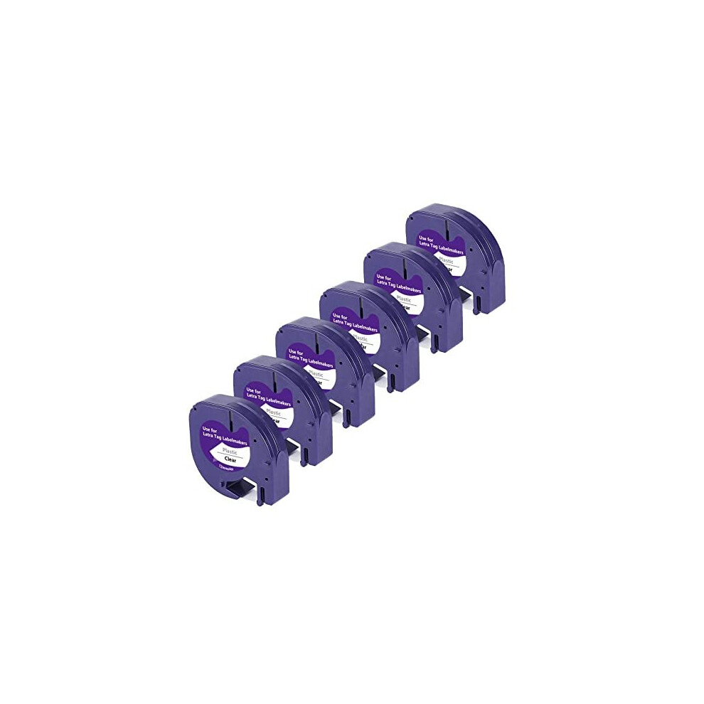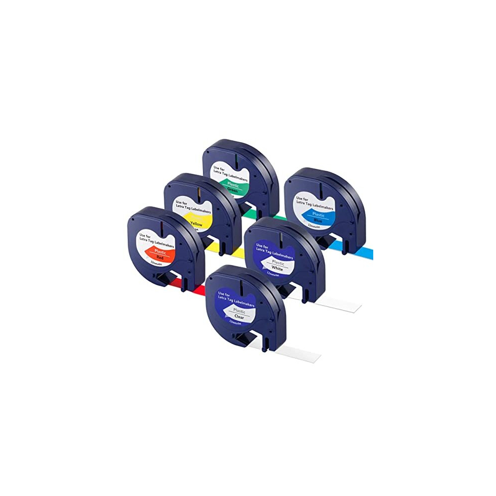 6X LetraTag Label Plastic Label Tape for Dymo, 12 mm x 4 m Roll, Black on Transparent/White/Yellow/Red/Blue/Green, Replacement Dymo Clear Label Tape