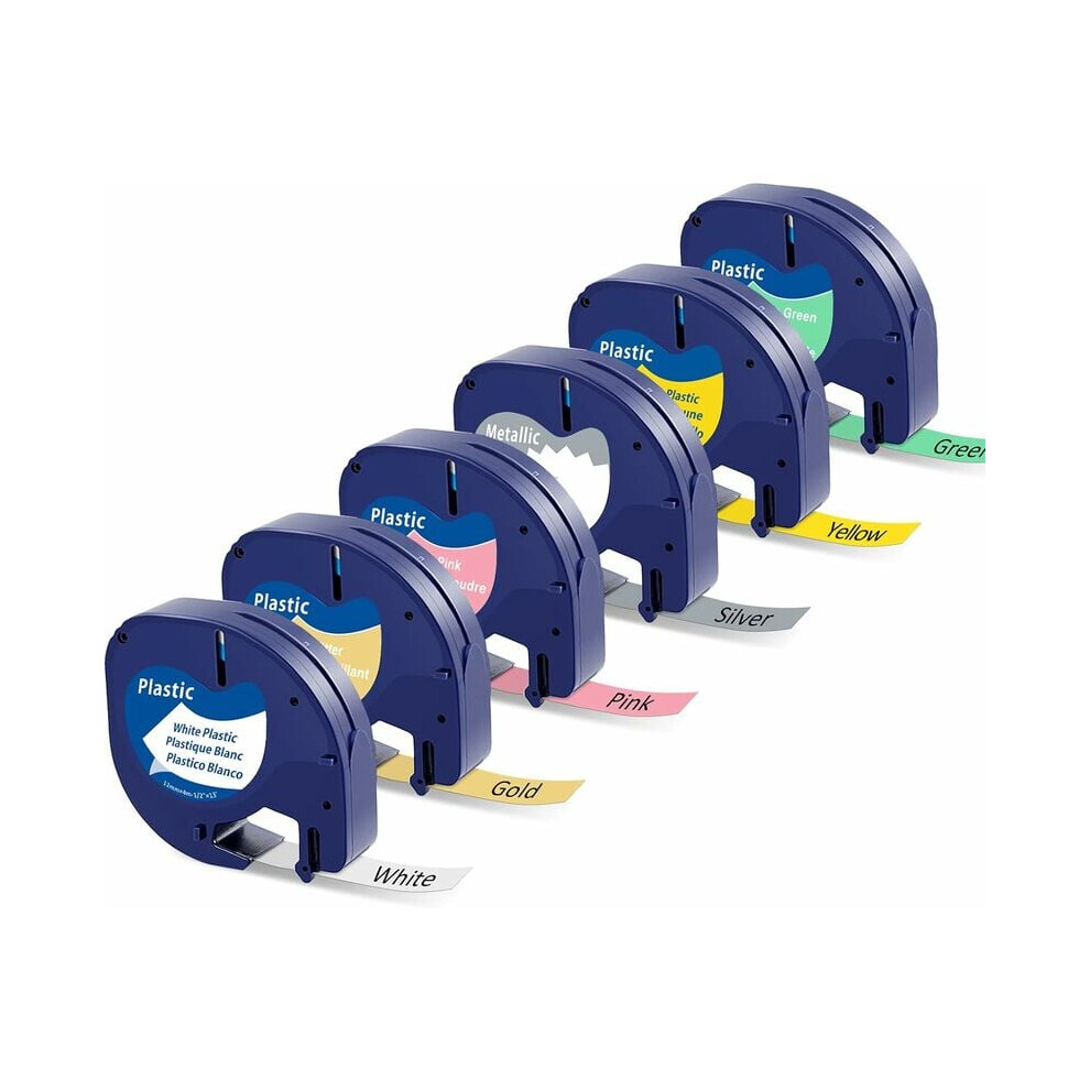 6X Replacement for Dymo Letratag Label Tape 12mm x 4m Colored Plastic Tape Compatible with Dymo Label Printer LetraTag LT-100H LT-100T LT-200B QX50 XR