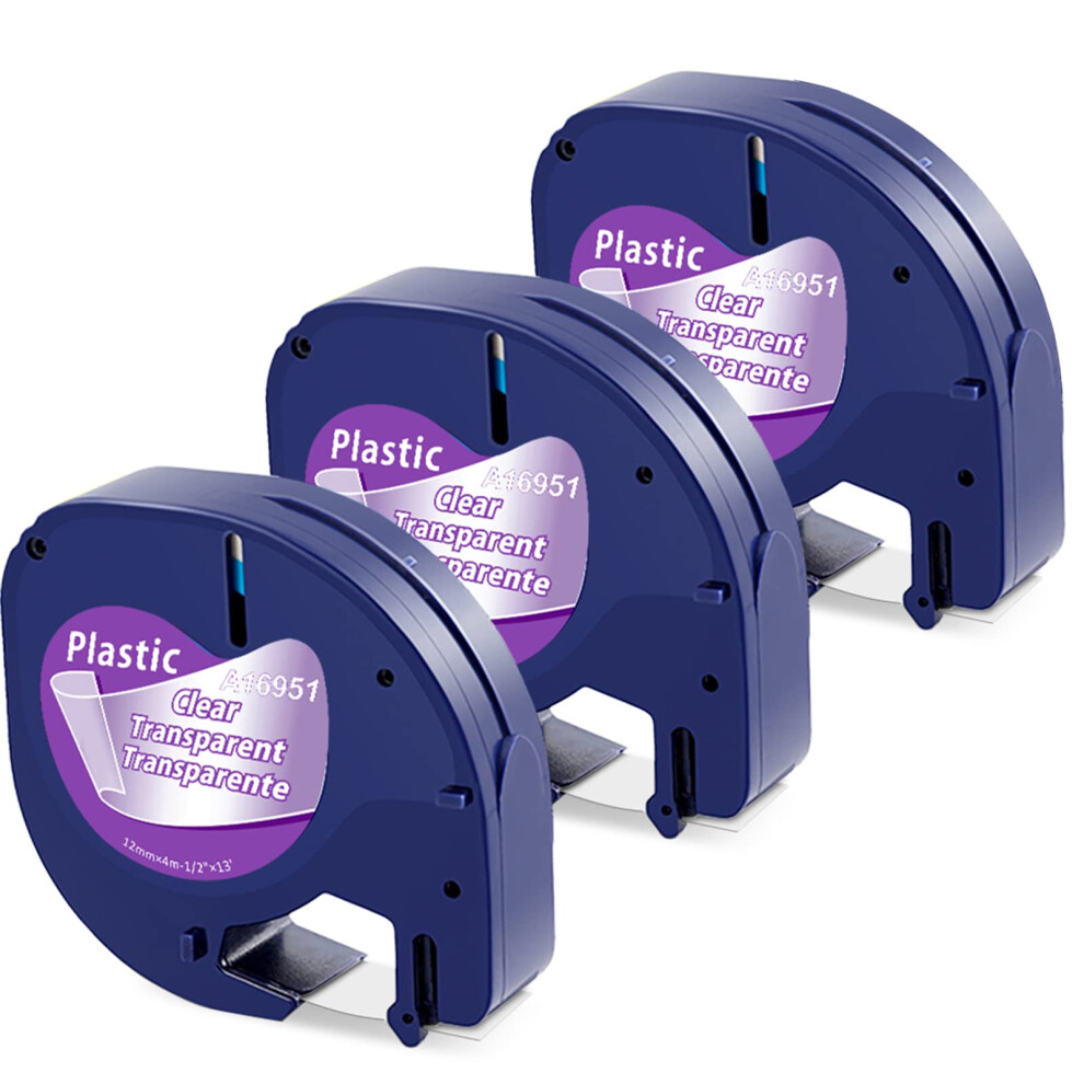 3 X 12267 Compatible with DYMO LetraTag Tape Plastic Clear Dymo Labels for Dymo Letra Tag Label Maker LT-100H 100T QX50 12mm x 4m