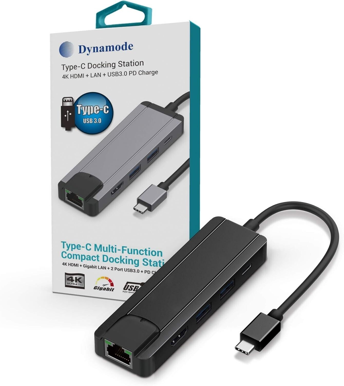 Dynamode Type-C Docking Station, Dual-USB3.0 Ports, Backward Compatible - 4K/2K HDMI HD Output Port, 4K @ 30Hz, Gigabit Ethernet (1000BaseTX) LAN RJ45 Port - SD, SDHC and TF Card Slots