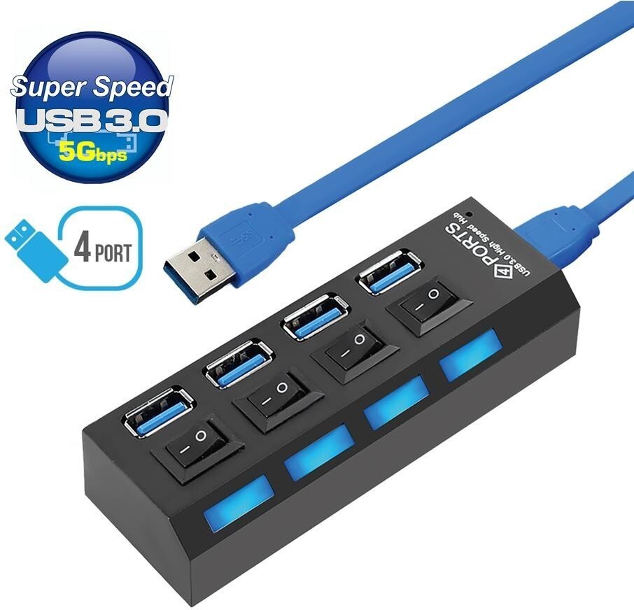 USB 3.0 SuperSpeed 4 Port USB Hub up to 4 Devices to 1 USB Port 5GBPS [008500]