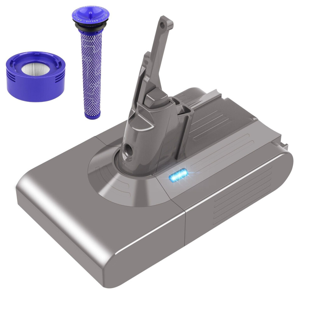 21.6V 6000mAh Lithium Battery for Dyson V8, V8 Absolute, V8 Motorhead, V8 Fluffy, Dyson V8 SV10 Vacuum Battery with 1 Pre-Filter, 1 Post Filter