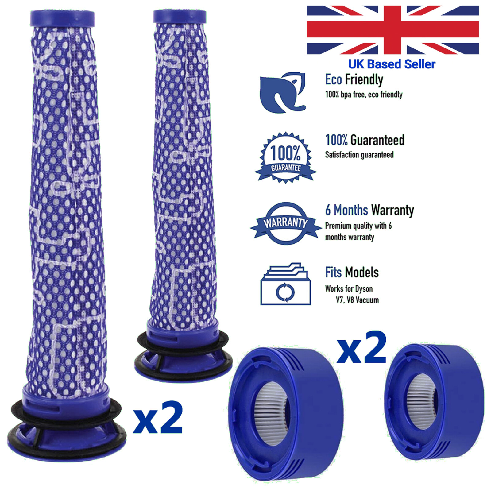 2 Pre & Post Motor HEPA Filer Kits Dyson V8 Animal Cordless Handheld Vacuum SV10