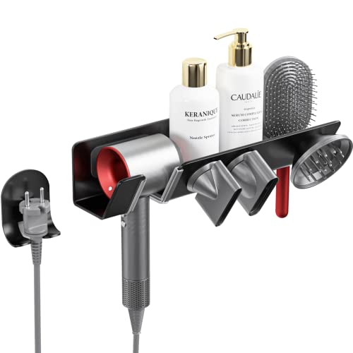 Hair Dryer Holder for Dyson Supersonic - Wall Mounted, Black Strong Magnetic Bracket Organizer for Attachments, Space-Saving Blow Hair Dryer Storage Shelf, Sturdy Bathroom Hair Care Tool Rack
