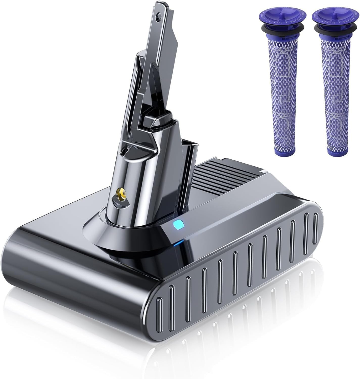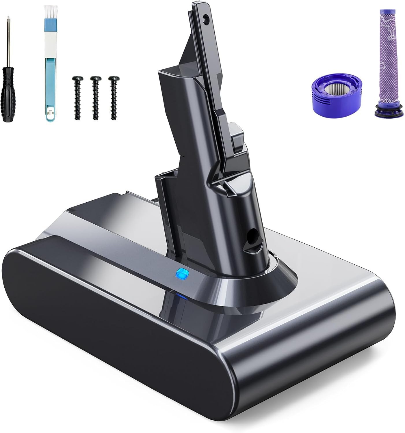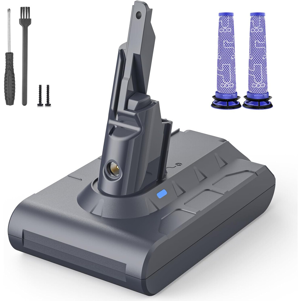 (V7 Battery) V6 Replacement Battery w/2 Filters, Compatible with Dyson V6 SV03 SV04 SV05 SV06 SV07 SV09 DC58 DC59 DC61 DC62 DC72 DC74, V6 Animal