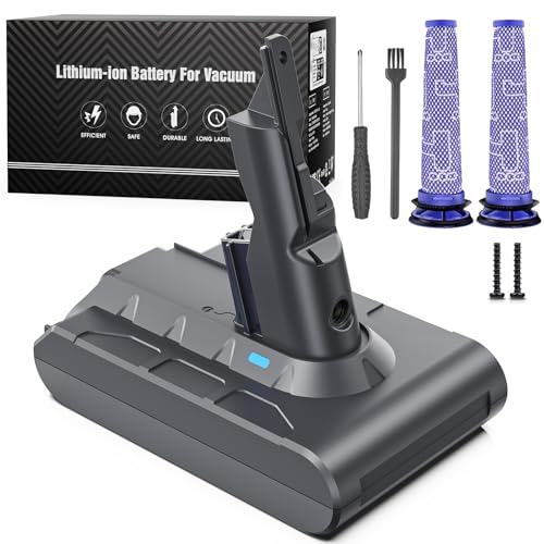 BuTurePre 6000mAh Replacement Battery for Dyson V7 Battery SV11 Compatible with Dyson V7 Animal, Fluffy, Trigger, Motorhead, Mattress 21.6V Li-ion with Pre-Filter, 4 Screws, and Screwdriver