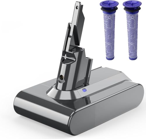 EVARY 6000mAh Replacement Battery for Dyson V7 Battery Compatible with Dyson V7 Vacuum Cleaner Series SV11 Absolute Animal Motorhead Trigger Car+Boat Fluffy HEPA 2*Filter