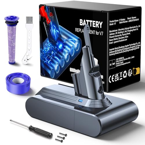 6000mAh Replacement Battery for Dyson V7 Battery Compatible with Dyson V7 Vacuum Cleaner Series SV11 Absolute Animal Motorhead Trigger Car+Boat Fluffy HEPA