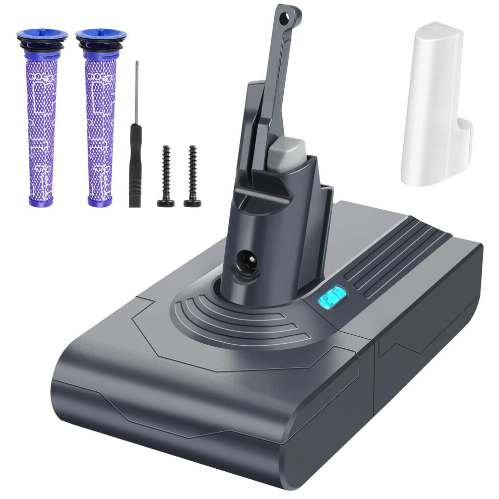 Waitley 6000mAh Battery for Dyson V8 Replacement Battery for V8 SV10 Compatible with V8 Absolute, V8 Animal/Motorhead/Fluffy Cordless Vacuum Cleaner with 2 Pre-filters+Screwdriver