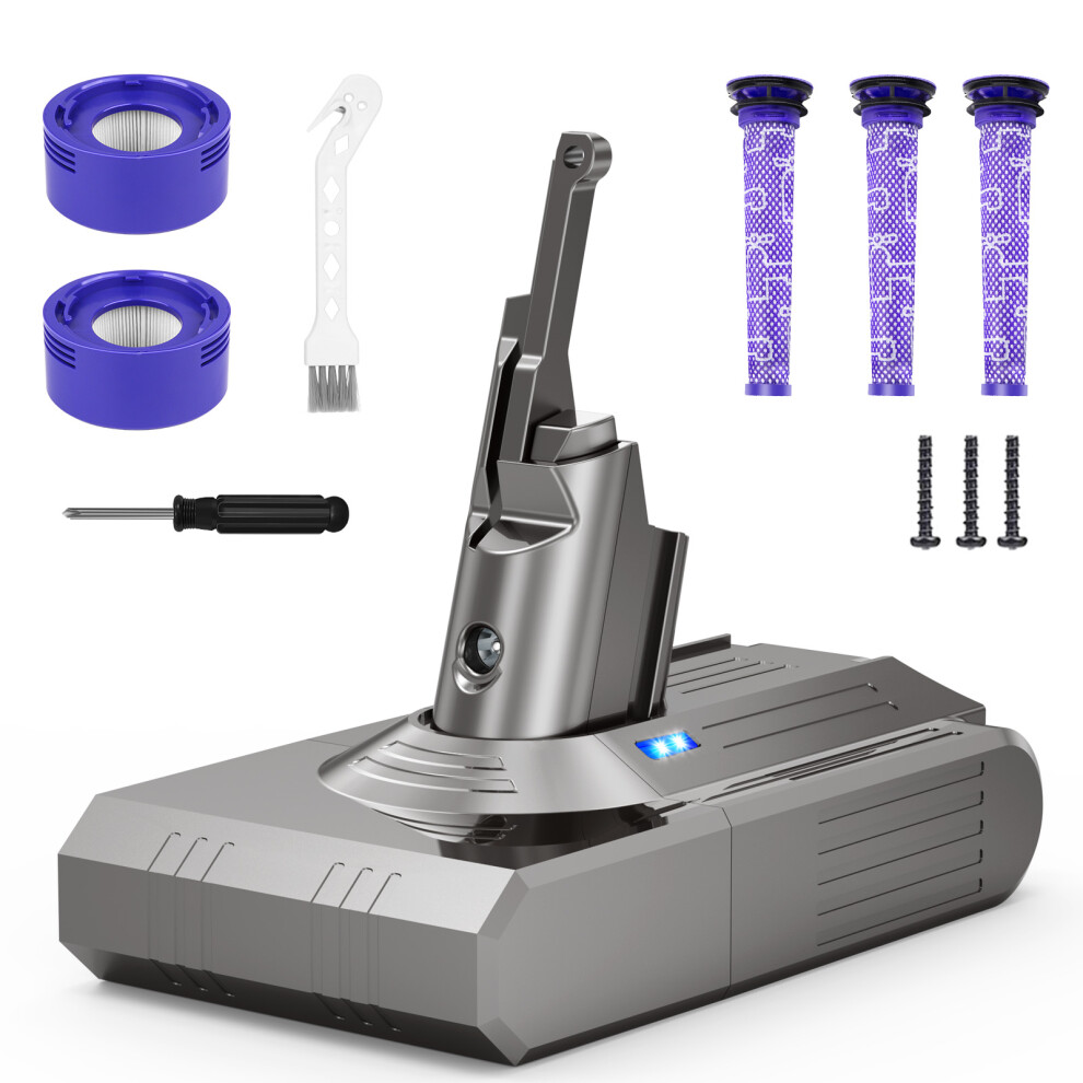 6000mAh for Dyson V8 Battery Animal Absolute Fluffy SV10 Cordless Vacuum Cleaner with Filters UK