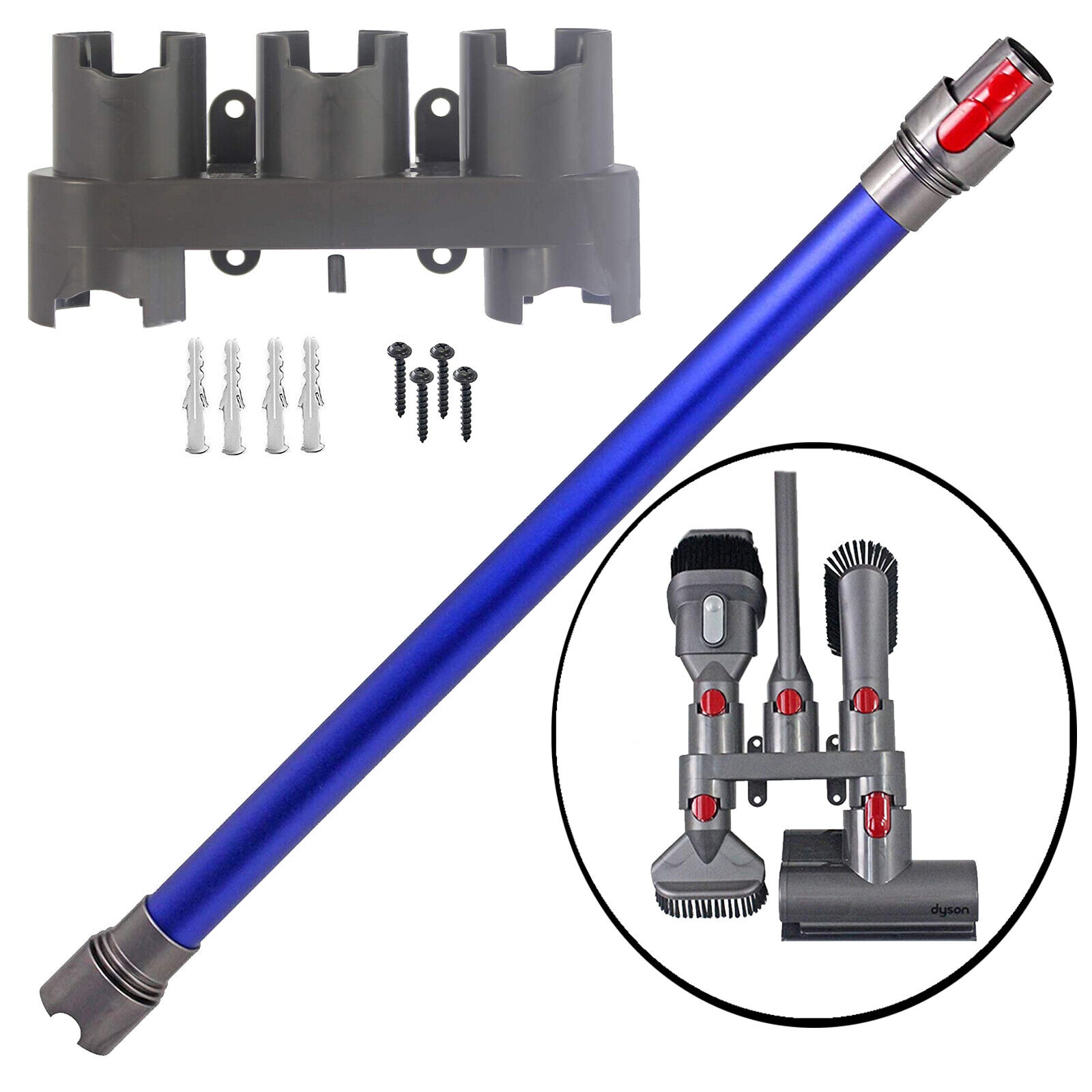 Blue Rod Wand Tube Pipe for DYSON V8 SV10 Vacuum + Wall Mount Tool Holder Rack