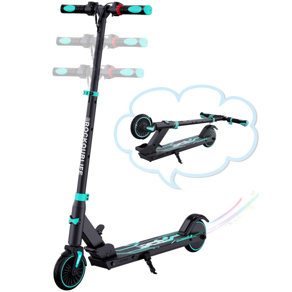 scoot4kids Kids Electric Scooter, Ages 6-12,130W Motor, 14 km/h Max Speed, 8 km Range, Colorful LED Lights, Foldable Design, Safe E-Scooter for Boys and Girls, Gift for Children and Teens (Cyan)