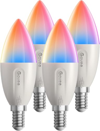 Govee E14 Smart Bulb RGBWW, Smart Light Bulb Work with Matter, Alexa and Google Assistant, Group Control, 450LM, 4.8W, DIY 16 Million Colors, 54 Scenes, 4 Pack