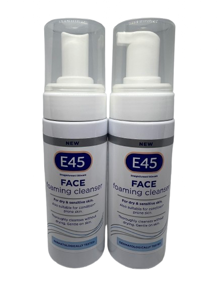 2 x E45 Face Cleanser, Foaming Face Wash For Dry, Sensitive Skin, 150ml
