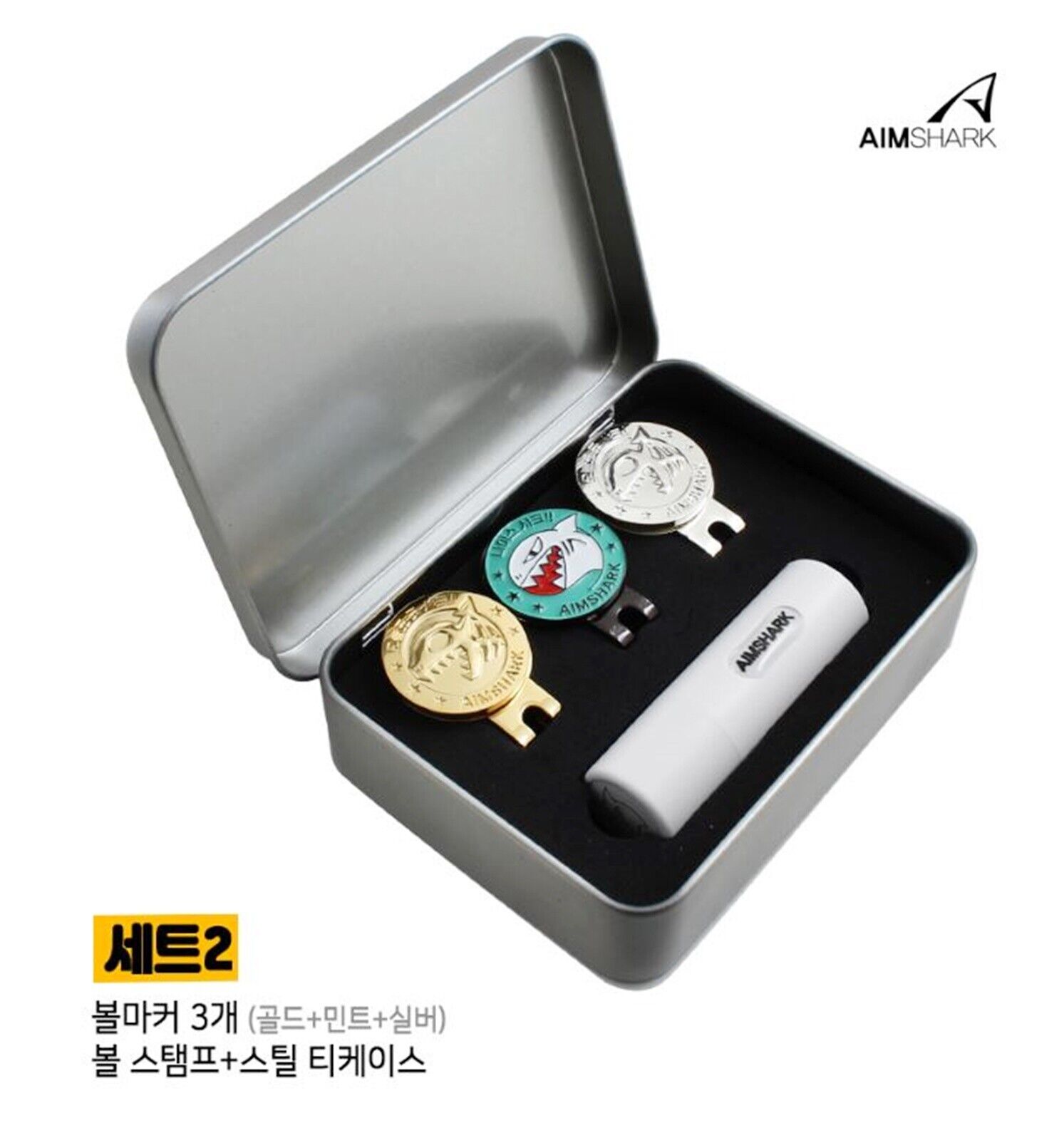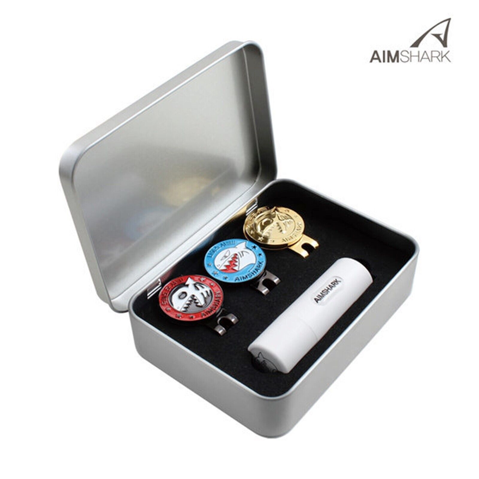 AIMSHARK Golf Hat Clip Ball Marker 3ea & Ball Stamp & Steel Case Set Magnetic