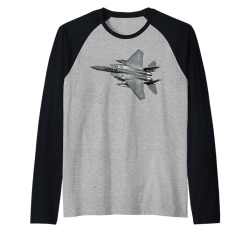 F15 Strike Eagle Military Aviation Combat Aircraft Design Raglan Baseball Tee