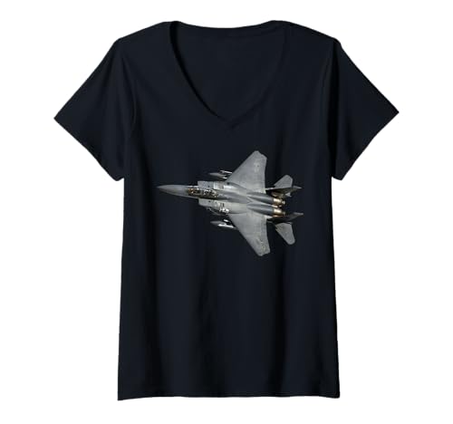 Women's F15 Strike Eagle Military Aviation Combat Aircraft Design V-Neck T-Shirt