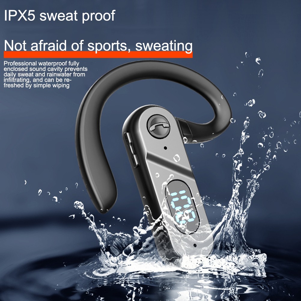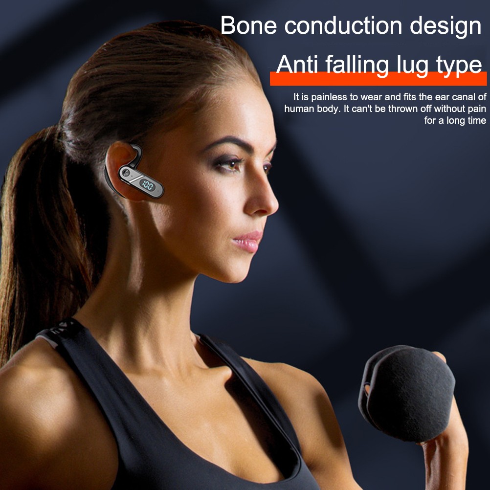 Bluetooth Headset Single Ear Open Ear Wireless Bone Conduction Headphones with Digital Battery Display Voice Control