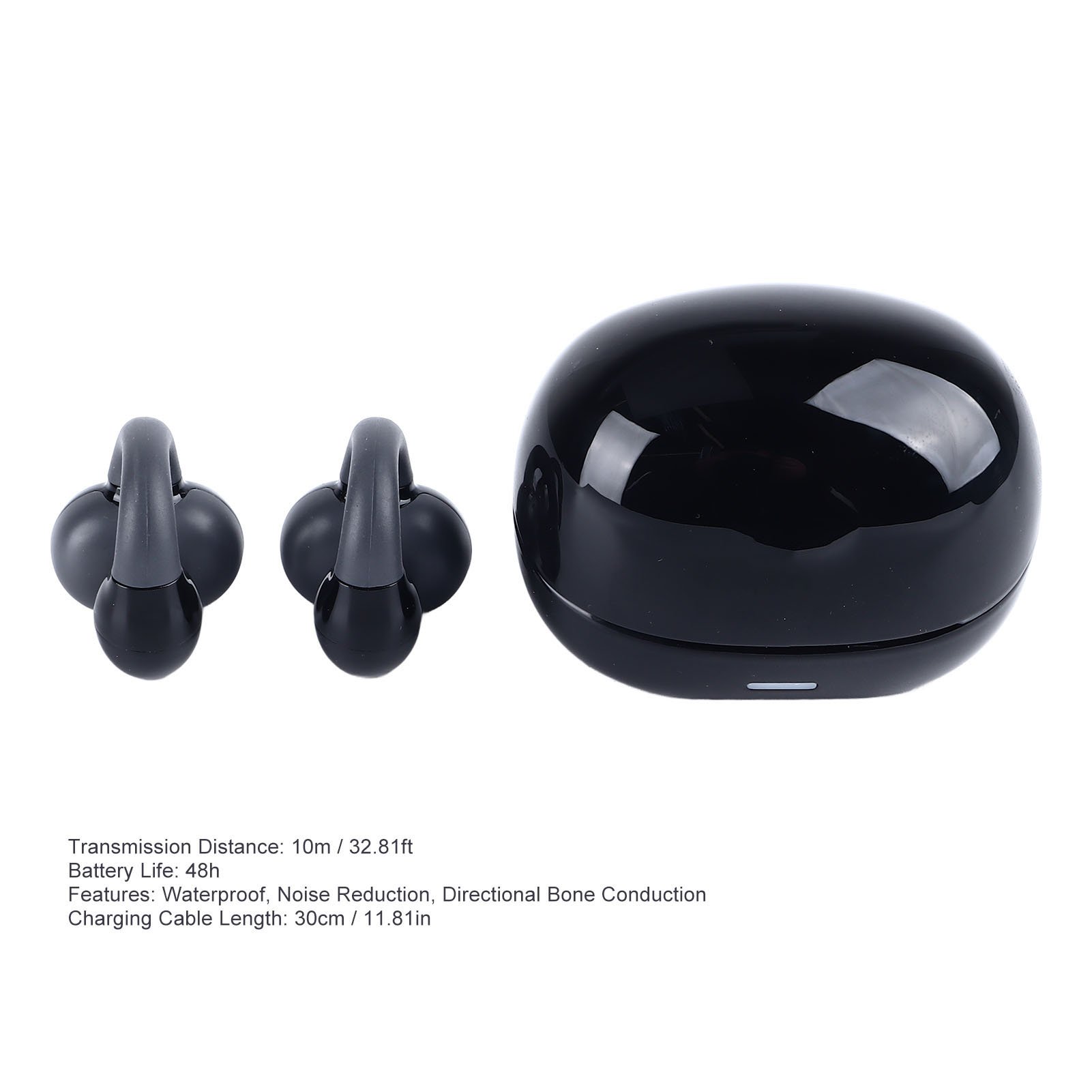 Open Ear Headphones Bone Conduction Wireless Earbuds Bluetooth 5.3 Clip On Waterproof Black For Hiking Driving