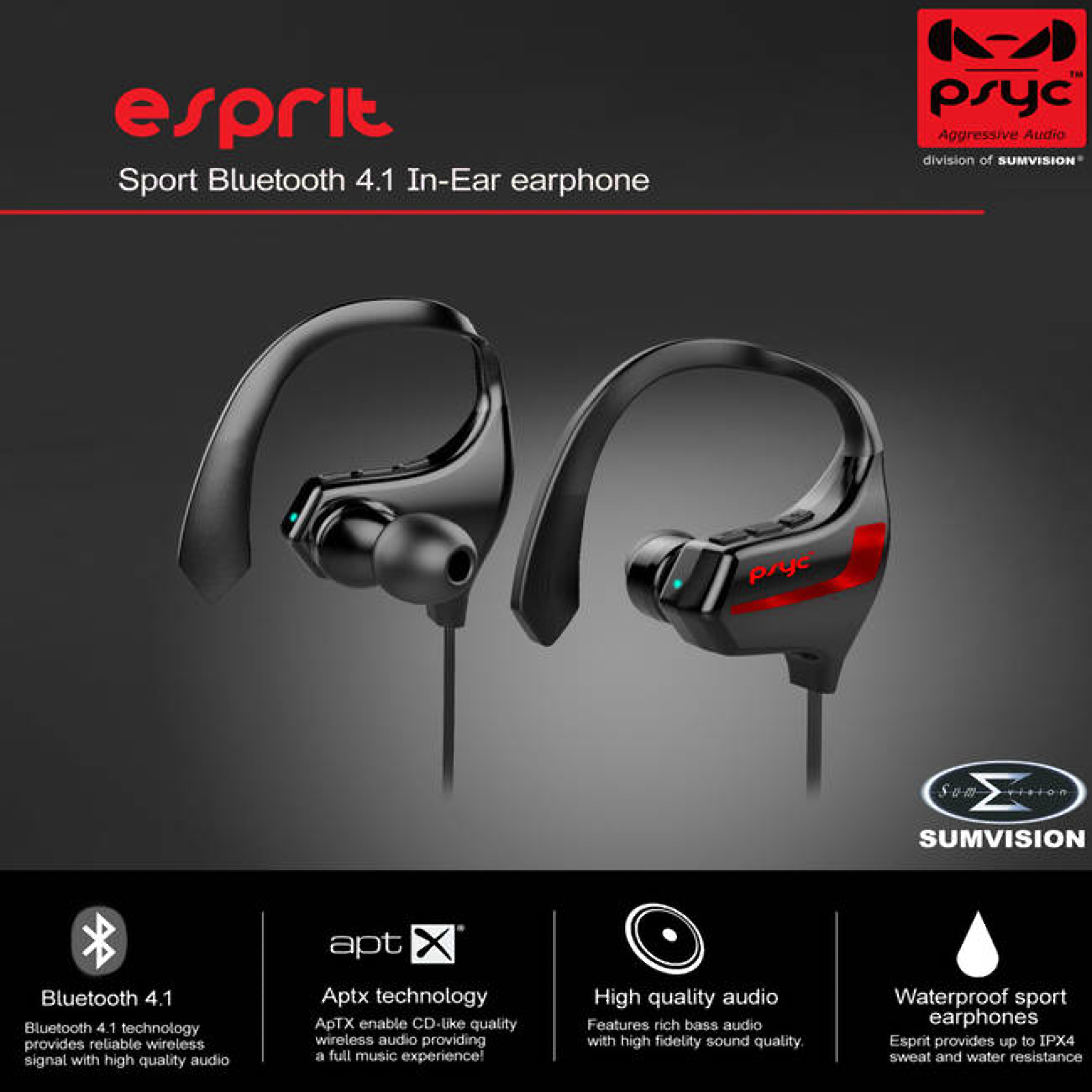 Sumvision Psyc Esprit In Ear / Ear Hook Sweat Proof Wireless Sports Headphones (HEADPHONE-PSYC-ESPRIT)