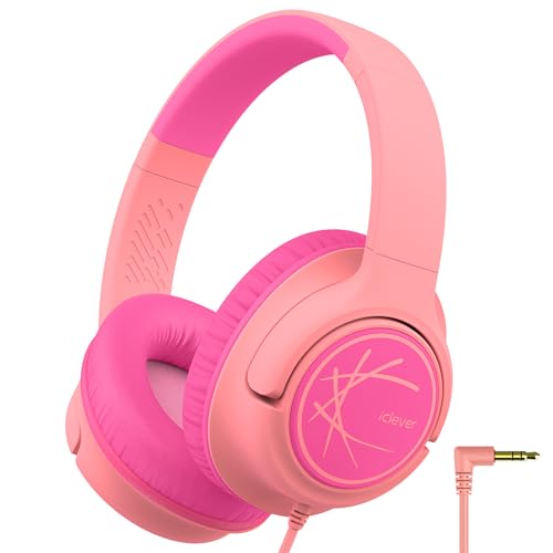 iClever Kids Headphones, Wired Headphones for Kids 85dBA Safe Volume Limit, Stereo Sound Foldable Adjustable Over Ear, 3.5mm Jack Boys Girls Childrens Headphone for School/Travel/Tablet/PC, Blue Pink