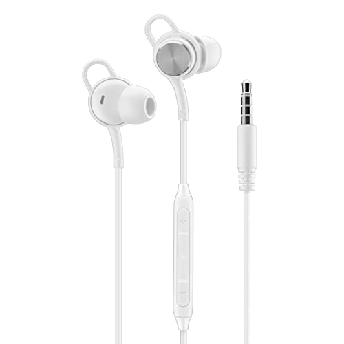Headphones In-Ear Wired Earphones Earbuds, Half in Ear Headphones 3.5mm Jack Headphones with Microphone and Volume Control for iPhone, Samsung, Android, iPad,MP3,Most 3.5mm Audio Devices