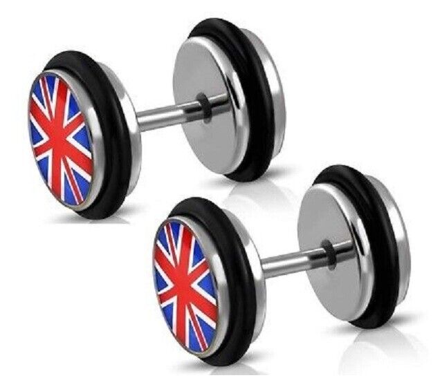 Union Jack Ear Stud Earrings Mens Womens Piercing Tunnel Like UK Flag Studs