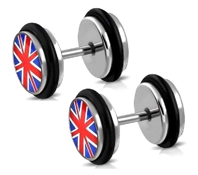 Union Jack Ear Stud Earrings UK Flag England Round Cheater Plug Studs 12mm Pair