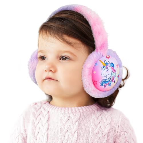 Winter Ear Muffs for Kids Girls, Windproof Ear Muffs Lightweight Comfort with Cute Unicorn Design Warm and Snug Fit, Plush Ear Warmers Winter Accessor