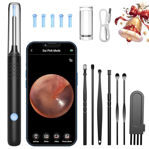 LMECHN Ear Wax Removal, Ear Cleaner with Camera, Ear Wax Removal Kit with 1080P, Ear Camera Otoscope with LED Light, Ear Cleaning Kit for iPhone, iPad, Android Phones-Black