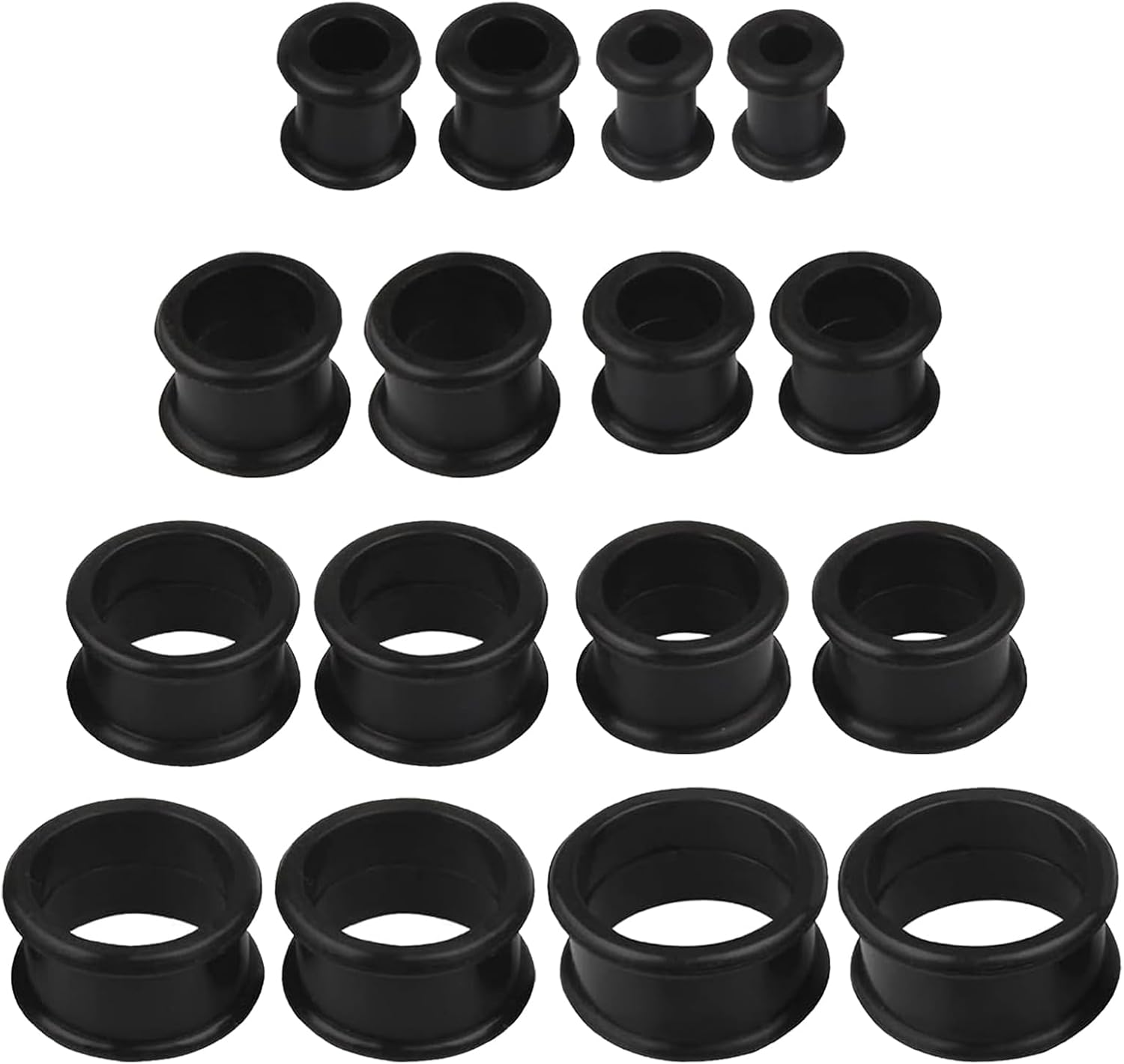 16 Pieces Silicone Flesh Tunnels Ear Stretchers Plugs Body Piercing Expanders,Stretching Kit Soft Silicone Ear Tunnels Earrings,Piercing Stretcher Plugs Ear Expanders Ear Spacers for Men Women (Black)
